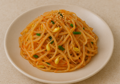 삶을 때 뚜껑을 꼭 닫기! 정확한 시간 지키기 (4~5분) 찬물에 식히기 → 물기 제거 확실히! 무칠 땐 살살~ 간은 마지막에 조절 가능