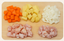 - 돼지고기나 닭고기를 한 입 크기로 잘라요.
