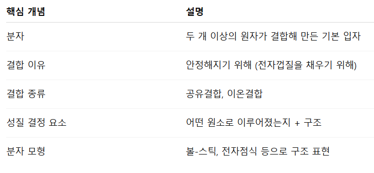 🧪 원자가 결합해 분자가 되는 과정과 그 성질, 모형