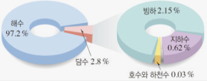 - 담수의 약 **0.3%**만이 지표에 존재