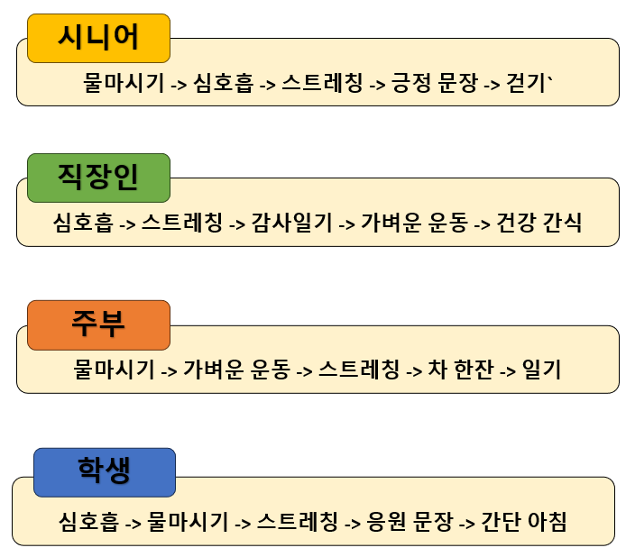 💡 시니어와 직장인에게 특히 좋은 아침 루틴 조합